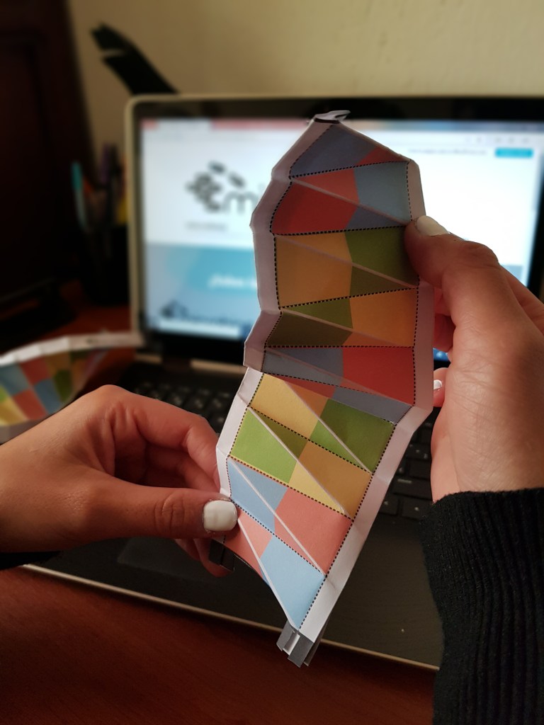 Primero imprimimos el modelo, y cortamos todos sus bordes. Luego, doblamos todos los bordes verticales plomos hacia dentro.